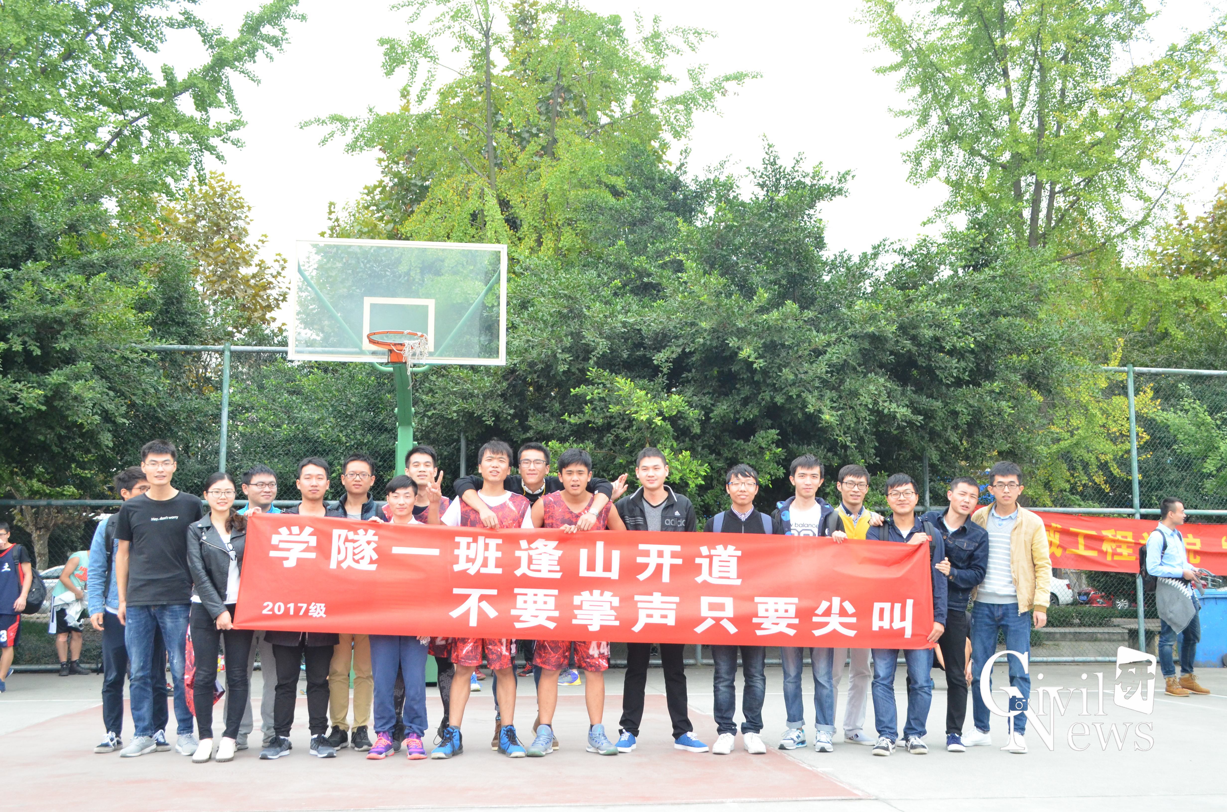 球场上,每位球员都在为自己的班级奋力拼搏,球场边的同学也在为球员们加油助威。其中学硕隧道一班的同学更具特色,为自己的班级拉了横幅助威。