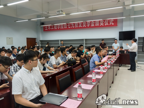 道路与铁道工程系李远富教授,以及刘昌清、寇忠厚、廖伟民共五位79级的学长参与本次颁奖仪式,并由学院辅导员向京华老师主持工作。