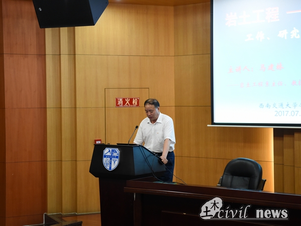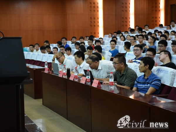 王明年教授讲解完毕后,随之而来的是来自岩土工程系的马建林教授,马教授从什么是岩土工程讲起,他提到“基础不牢,地动山摇,”证明了岩土工程的重要性。在专业知识方面上,他还介绍了我校岩土专业的概况、研究方向、研究项目和获奖成果,最后同样阐述了该方向的考研情况和未来发展远景。接下来,登台的是来自结构工程的杨成教授,细致而又充实的介绍让大家对结构工程拥有了自己的理解,杨成教授也鼓舞了在座学生并建议他们选择适合自己的路。
