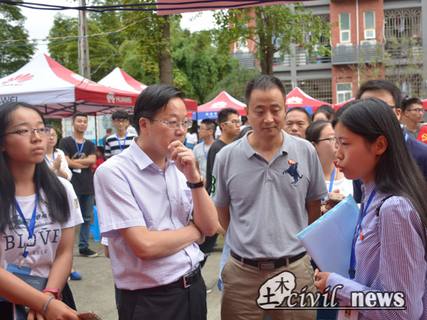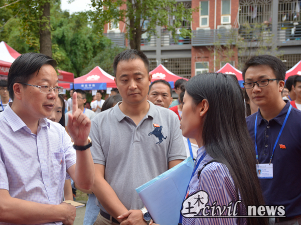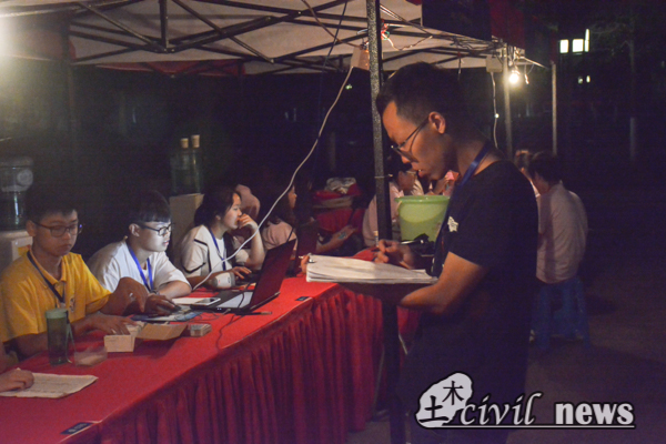 下午五点半,党委常委沈火明、党委学生工作部部长高平平、学生本科生教育管理科科长孔祥彬、副科长王雯婷几位领导到达迎新点慰问服务人员并对迎新工作进行询问。到达土木学院的迎新接待处时,常委沈火明和刘萍老师进行交流沟通,了解到校的新生人数并叮嘱了迎新的有关事项。