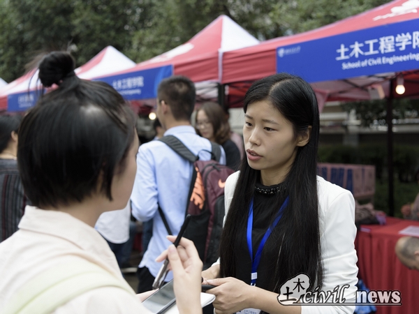 采访完毕,她回到迎新点继续自己的工作,这种以身作则的精神,更让人觉得敬佩。
