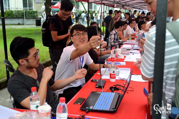 根据学校安排,8月30日开始迎接研究生新生。学院的老师和志愿者们很早就在眷诚斋8、9号楼通道内摆好了性吧