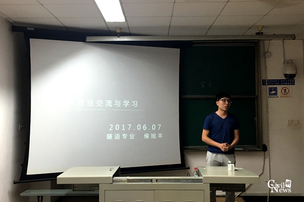 最后的互动交流环节真是精彩纷呈。有同学希望能够有相关就业指导群尽早指导交流,不难看出渴望就业的同学求职心切;有同学打趣说干土木这行尤其隧道这一行业太忙太累,没有时间找对象,当时认真的阐述和发自肺腑的诉说引得哄堂大笑,也让侯旭丰师兄一时间掩面而笑不知如何回答。侯旭丰师兄对所有问题都尽全力回答,并表示大家就业上有任何问题都可以私下与他联系,大家多多交流。就业交流分享会于17:30圆满结束。