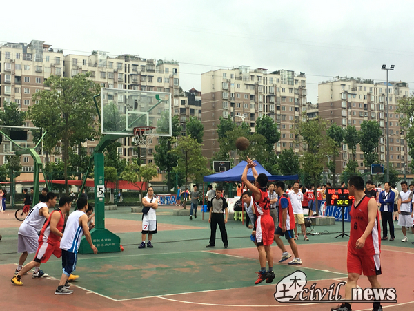 中场休息时间进行了女教师投篮比赛,土木学院共投进5个球。在此项目中,土木学院以3个投篮领先,使双方比分缩小至2.5分。
