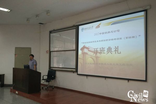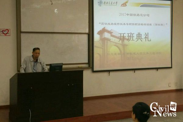 继续教育中心江富长书记、郭静老师以及各个铁路局学员出席了此次开班典礼。此次培训班的学员主要由来自各铁路局及铁路集团的领导和高铁线路骨干人员组成,培训的目的是针对当前高铁工程一线生产作业状态,与学员一起学习研讨相应实际问题,提高学员的适应性能力,为以后的高铁生产作业提供理论和技术的双向支持。