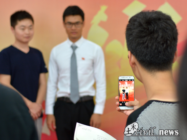 授位决定宣读完毕后,刘学毅教授、富海鹰教授、祝兵教授和马建林教授来到授位区,依次为2017届本科生授位并进行合影留恋。毕业生排起长龙,依次上前,接受授位。他们向老师表达感谢,用影像记录对他们来说不平凡的一天。四位教授伸手,握手祝福,颁授证书,行拨穗礼,不断地重复这样的动作并诚挚的祝愿毕业生们前程似锦。排队的长龙渐渐缩短,待老师为最后一名毕业生拨穗正冠时,此次授位仪式就正式结束了。