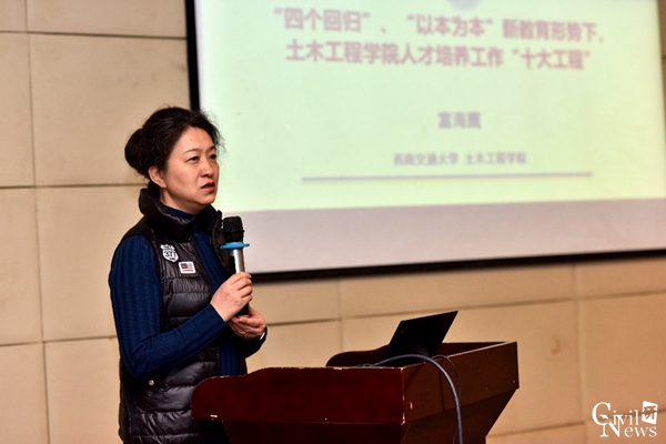 人才培养工作“十大工程”》的报告,她在报告中指出,随着中国教育实施“新三步走”的战略,新时代下中国高等教育的新形势也在不断发展,土木学院的人才培养工作也面临着“破题”的新挑战。为了更好地做好土木学院的人才培养工作,经过两个多月的调研、讨论、反复修改,制定了并即刻全面启动符合时代与学院发展需求的性吧