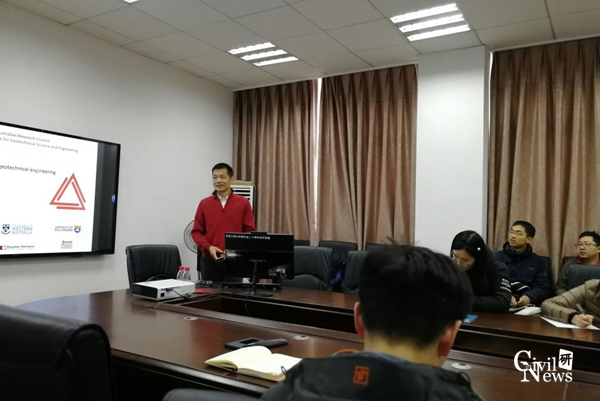 邀请到了澳大利亚纽卡斯尔大学黄劲松教授来我校进行学术交流。黄劲松教授长期从事岩土工程风险分析和随机场模拟理论研究,在边坡稳定性,计算岩土力学及贝叶斯更新问题研究上颇有建树。上午十点,在土木馆1440会议室,黄教授以“贝叶斯定理在岩土工程中的应用”为题,为大家带来一场精彩的前沿学术讲座。讲座由道路与铁道工程系副主任刘先峰教授主持。