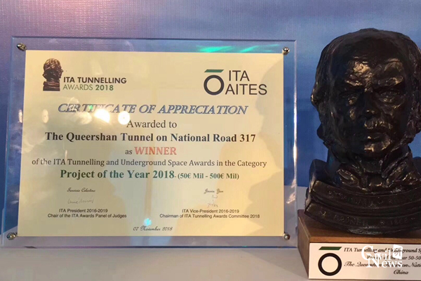 参与的雀儿山隧道获“国际隧道协会2018年度工程奖”