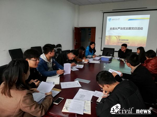 2018年11月29日下午16:00,土木学工组党支部在犀浦X4312会议室开展了“全面从严治党”主题党日活动,旨在推动党支部高质量、标准化建设。本次主题党日活动主要学习了《中共性吧