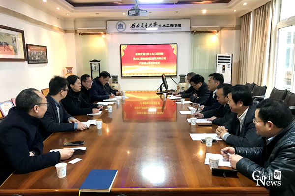 与四川汇源钢建装配建筑有限公司在学院会议室举行实习产学研合作签约仪式。川威集团党委副书记、纪委书记、工会主席李和胜、总工程师谢建国、四川汇源钢建装配建筑有限公司总经理林永钢、副总经理陈启超、总工程师顾于、人力资源处长敖祥林一行六人赴土木学院参加了本次签约仪式,性吧