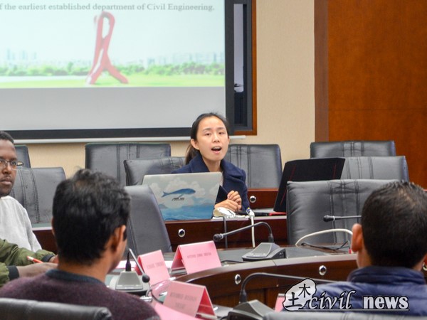 上午9时50分,2018级留学新生欢迎会于综合楼准时进行。来自也门,埃塞俄比亚等9个国家,有着不同文化背景的15位硕博士研究生齐聚一堂,眼里写满对本次活动的期待。学工组付真珍介绍了列席的学院领导:副院长富海鹰教授、院长助理陈嵘教授以及导师代表李明水教授等。