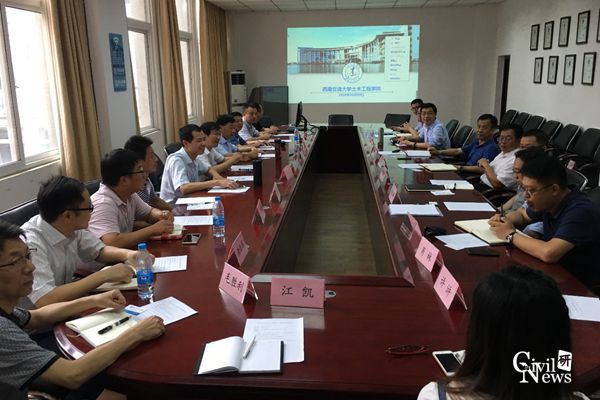 开展交流座谈,随行的还有副院长司马卫平,副院长刘文方,建经系主任叶建兵、梁俊勇,土建系主任贺灵荣,市政工程系主任宁欣强、唐恒军,试验中心主任毛利胜,秘书江凯。座谈会议由王明年副院长主持,性吧