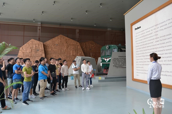 校史馆建设情况进行了简单介绍,随后团队同学在讲解员的带领下,详细参观了校史馆10个展厅:序厅、榆关始创、复校唐山、成就斐然、烽火薪传、迎接曙光、砥砺前行、创业峨眉、蓉城新篇、桃浓李郁灿若星河——交大力量。在讲解员的介绍下,了解了茅以升炸桥,林同骅自主研发飞机,母校的一件件苦难辉煌的事迹映入眼帘;茅以升、林同炎、黄万里、王梦恕等一批优秀的杰出校友面孔清晰展现于眼前。这个诞生于1896年的山海关北洋铁路官学堂(中国第一所工程高等学府),虽校名几经更迭,校址几度变迁,经受了战火、搬迁、地震的磨炼,仍然屹立不倒,薪火相传,给在场的师生们上了生动的一课。